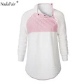 Nadafair Casual Fleece Sweatshirt Women 2019 Patchwork Zip Faux Fur Oversized Winter Fluffy Hoodie Female Plus Size Pullovers