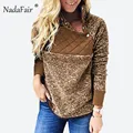 Nadafair Oversized Fluffy Sweater Women Leopard Patchwork Zip Pockets Fleece Casual Plus Size Winter Pullover