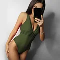 Riseado New 2020 Swimwear Women Sexy Plunging One Piece Swimsuit Solid Mesh Halter Swimsuits Women Beachwear Bathing Suits