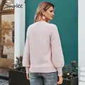 Simplee Hollow out knitted women pullover sweater Lantern sleeve female autumn winter sweater O-neck casual ladies jumper 2019