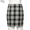 Cheap Price Sisterlinda Vintage Black Plaid Mini Skirt Women High Waist Mini Skirt Fashion Office Lady Party Si with FREE Worldwide Shipping!