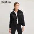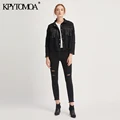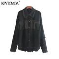 KPYTOMOA Women 2020 Street Fashion Oversized Tassel Jacket Coat Vintage Long Sleeve Frayed Irregular Outerwear Chic Tops