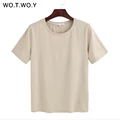 Limited Price WOTWOY 2020 Summer Cotton T Shirt Women Loose Style Solid Tee Shirt Female Short Sleeve Top Tees O- with Free Worldwide Shipping!