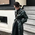 LANMREM 2020 New Spring Fashion Long Type PU Leather Windbreaker Loose Single-breasted Long Coat Black Women's Clothing YG625